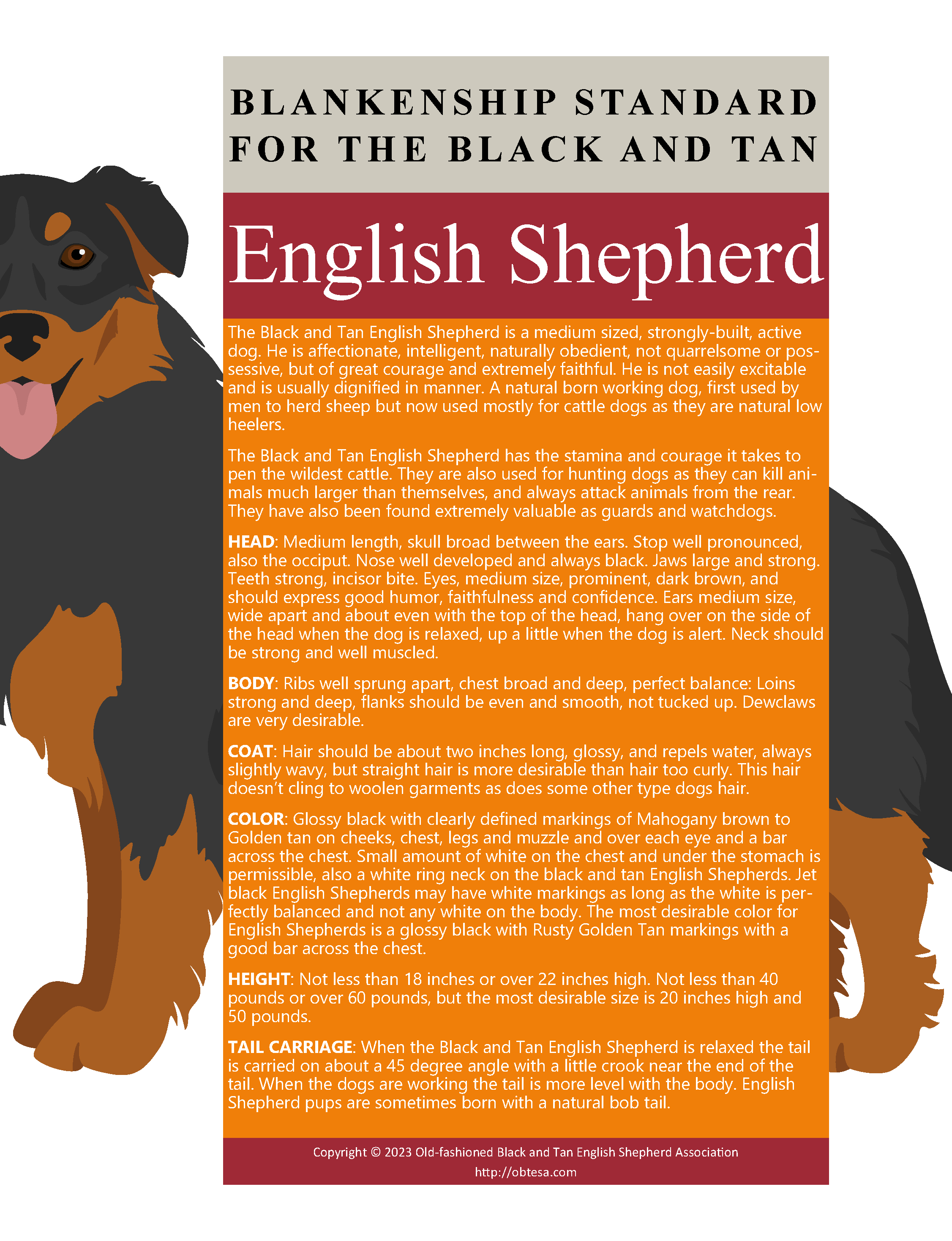 Infographic: Blankenship Standard for the Black and Tan English Shepherd